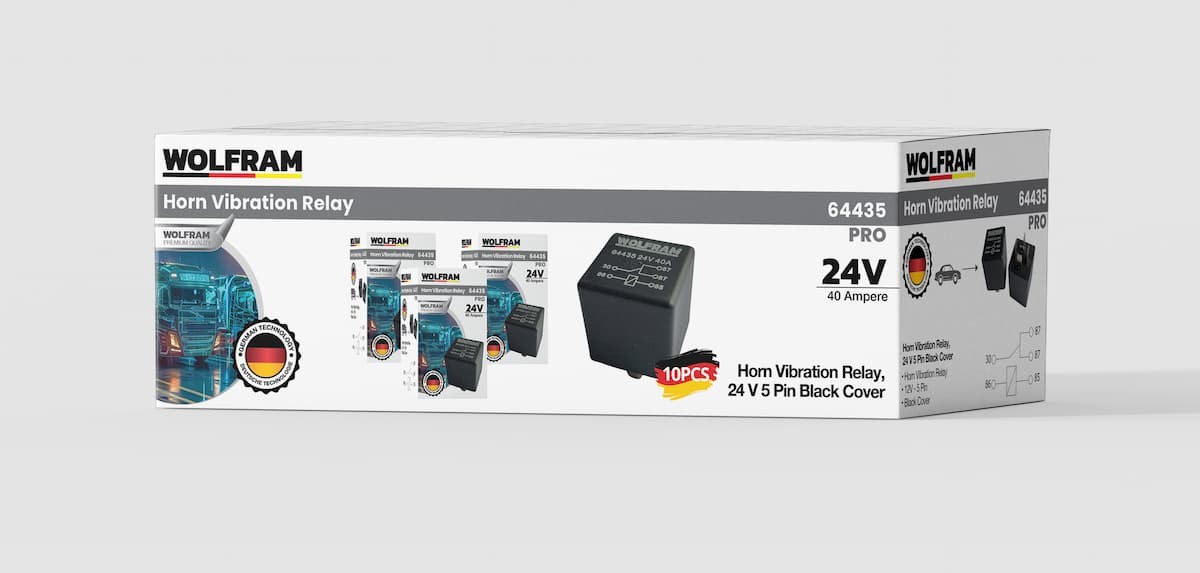 Wolfram Röle Korna Titretme Pro 24V, aracınızın korna sistemine profesyonel bir dokunuş katmak ve güvenilirliği en üst seviyeye çıkarmak için tasarlanmış ideal çözümdür. Performans ve dayanıklılık için Wolfram’ı tercih edin.